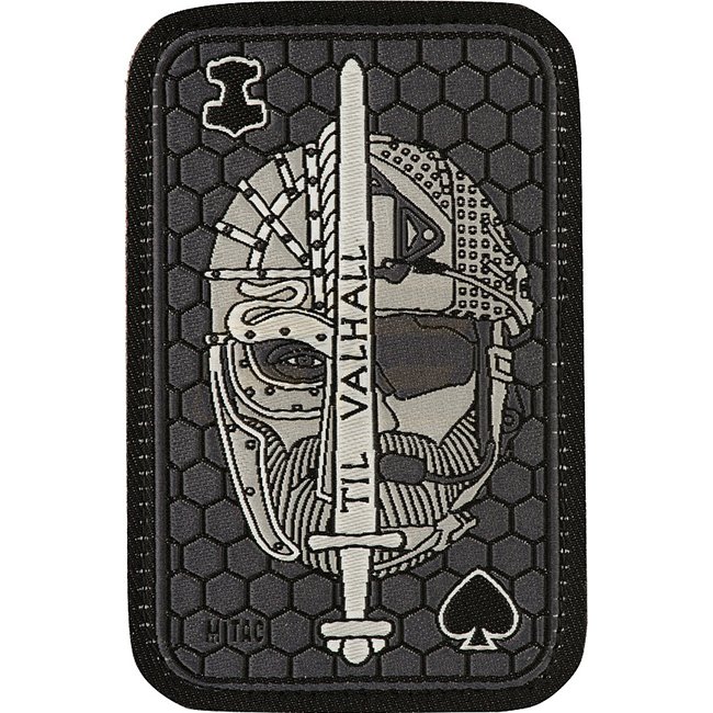 M-Tac Til Valhall Ace Gewebter Aufnäher - Grau, aus Oxford Vorderseite und Hakenflächenrückseite, Maße 68 x 108 mm.
