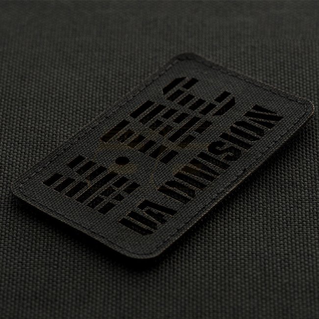 M-Tac UA Division Laserschnitt-Patch - Schwarz. Vorderseite aus Cordura 500D, Rückseite mit Hakenfläche, 80x50 mm.