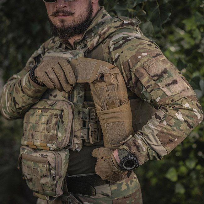 Die Außentasche besteht aus Cordura 500D - einem strapazierfähigen Material, das abriebfest und hohen Belastungen standhält. Die inneren Seitenwände sind aus elastischem Nylon, wodurch es seine Form behält. Ein zusätzliches Befestigungselement ist ein Gurt, mit dem Sie das Erste-Hilfe-Set auch während der Aktivität sicher halten können. Wird über die MOLLE-Schnittstelle an der Ausrüstung befestigt.