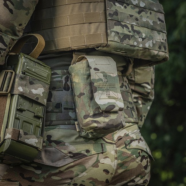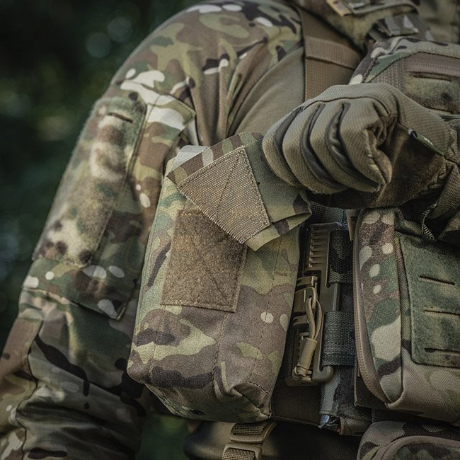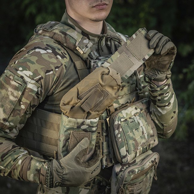 Die Außentasche besteht aus Cordura 500D - einem strapazierfähigen Material, das abriebfest und hohen Belastungen standhält. Die inneren Seitenwände sind aus elastischem Nylon, wodurch es seine Form behält. Ein zusätzliches Befestigungselement ist ein Gurt, mit dem Sie das Erste-Hilfe-Set auch während der Aktivität sicher halten können. Wird über die MOLLE-Schnittstelle an der Ausrüstung befestigt.