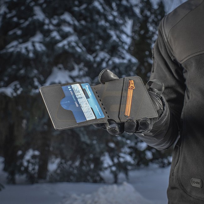 Das kompakte und elegante Wallet Slim Elite dient zur Aufbewahrung von Bargeld, Karten und Visitenkarten. Diese Brieftasche besteht aus modernem Polymerverbundstoff, der eine außergewöhnliche Abriebfestigkeit, Festigkeit und Haltbarkeit aufweist. Dieses Modell hat ein Fach für Papierscheine, 6 Fächer für Plastikkarten und eine Messingniete mit Markenzeichen. Auch bei dieser Generation fügten die Designer ein Fach für Kleingeld hinzu. Dieses kompakte Zubehör wird für diejenigen interessant sein, die Bequemlichkeit und Praktikabilität schätzen. Aufgrund seiner Größe passt es problemlos in Ihre Tasche.