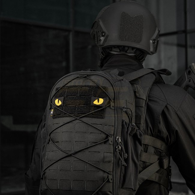 M-Tac Yellow Tiger Eyes Laser Cut Patch - Schwarz, aus Cordura 500D mit Hakenoberfläche, Abmessungen 40 x 25 mm