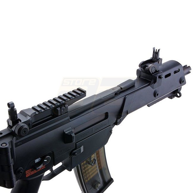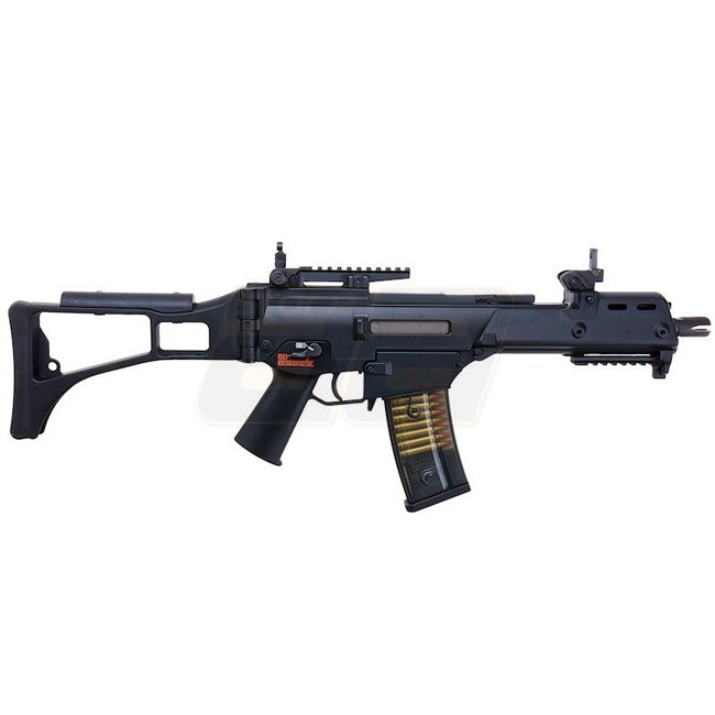 Die Marui G36C Plus AEG verfügt über ein Version 6 Gearbox, MOSFET, einen maßgeschneiderten Motor und eine Kombination aus Polymer- und Metallzubehör. Mit einer Magazinkapazität von 50 (6mm) hat diese kompakte Waffe eine Länge von 718 mm und wiegt 2880 g.