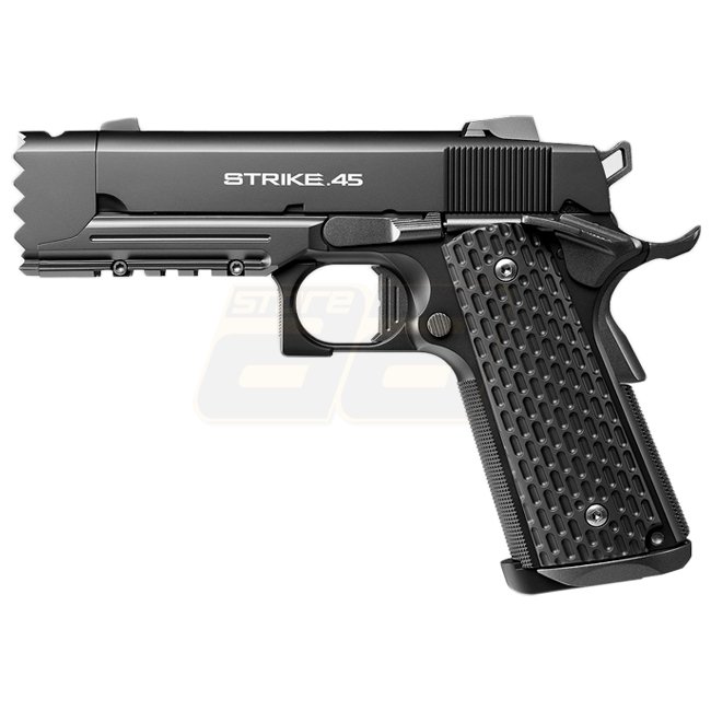 Warum dieses Modell als Kämpfer (Warrior) bezeichnet wird sieht man wohl auf den ersten Blick: Das massive Frontstück dieser auf der 1911er Serie basierenden Pistole passt perfekt zur aggressiven Optik des geraden Abzugs. Wie üblich bei den 1911 Pistolen verfügt auch dieses Modell über eine Handballensicherung im Griffstück sowie eine zweite Sicherung welche sich nur im durchgeladenen Zustand aktivieren lässt. Das schlanke Griffstück beherbergt ein einreihiges Single Stack Magazin mit einer hohen Kapazität von 28 Schuss sowie dem integrierten Gastank. Aufgrund der speziellen (abnehmbaren) Schiene unter dem Lauf kann problemlos Zubehör wie Lampen montiert werden, jedoch passt die Waffe dadurch nicht in Hartschalen Holster wie sie etwa durch Blackhawk hergestellt werden. Wie üblich bei den Pistolen von Marui wird auch dieses Modell aus Kunststoff gefertigt. Dies macht sie zwar etwas leichter als andere Modelle, jedoch senkt das reduzierte Gewicht des Schlittens auch den Gasverbrauch und erhöht die Schussrate. So oder so kann guten Gewissens die Aussage getroffen werden, dass dank ihrer Hochwertigkeit und Zuverlässigkeit alle Marui Pistolen gleichermassen empfohlen werden können.
