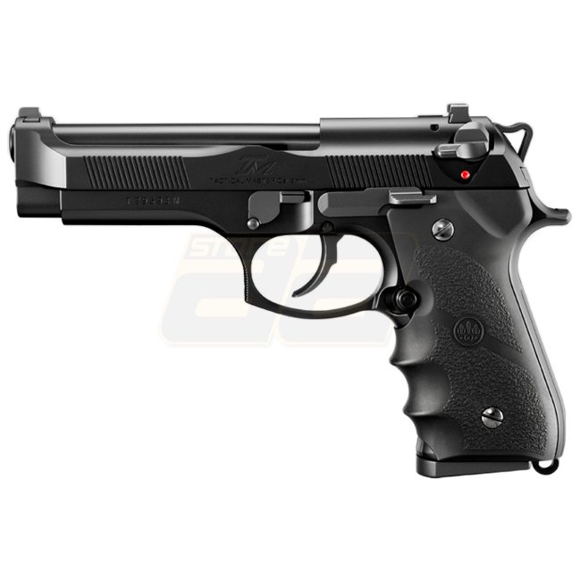 Die klassische M92 mit ihrem unverkennbaren Design, hergestellt durch Tokyo Marui Japan. Die Sicherung mit rotem Indikator funktioniert wie beim Original, das Magazin lässt sich durch Betätigen des Magazinauswurfs mühelos aus dem Schacht entnehmen. Da auch dieses Modell, wie bei Marui üblich, aus Kunststoff gefertigt ist, fällt das Gesamtgewicht mit 850 Gramm etwas leichter aus. Dies macht die M9 mit einer höheren Schussrate sowie dem niedrigeren Gasverbrauch wieder wett. Am Ende des Magazinschachts findet sich eine Schlaufe zur Befestigung eines Fangriemens mit welchem die Pistole zum Beispiel am Gurt gesichert werden kann. Diese Ausführung weist ein ergonomisches, aus Gummi gefertigtes Griffstück auf.