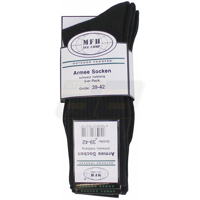 MFH Army Socks Medium-Long 3-Pack - Black - 43/46