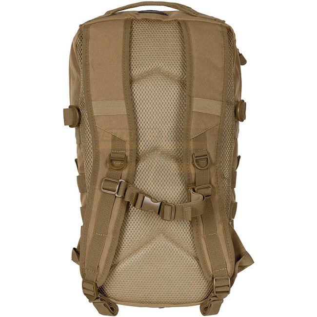 MFH Rucksack Daypack - Coyote: Bequemer, langlebiger Rucksack mit verstellbaren gepolsterten Trägern, Brustgurt, Hüftgurtbefestigungsoption und atmungsaktiver Netzpolsterung. Mehrere Fächer, Molle-Anbringungsschlaufen und Öffnung für Trinksystem. 15L Kapa