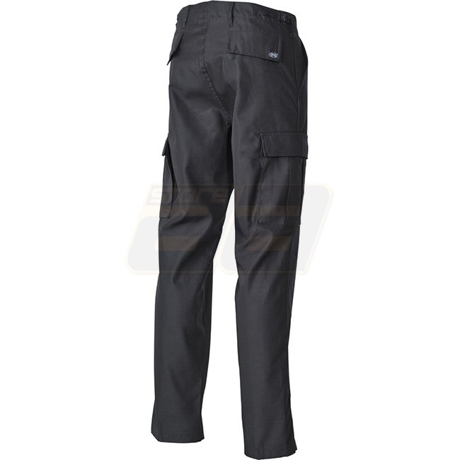 MFH BDU Kampfanzughose - Schwarz - 4XL: Klassische US ARMY-Hosen mit Frontreißverschluss, 6 Taschen, verstellbarem Bund, breiten Gürtelschlaufen und Zugband am Saum. Material: 65% Polyester, 35% Baumwolle.