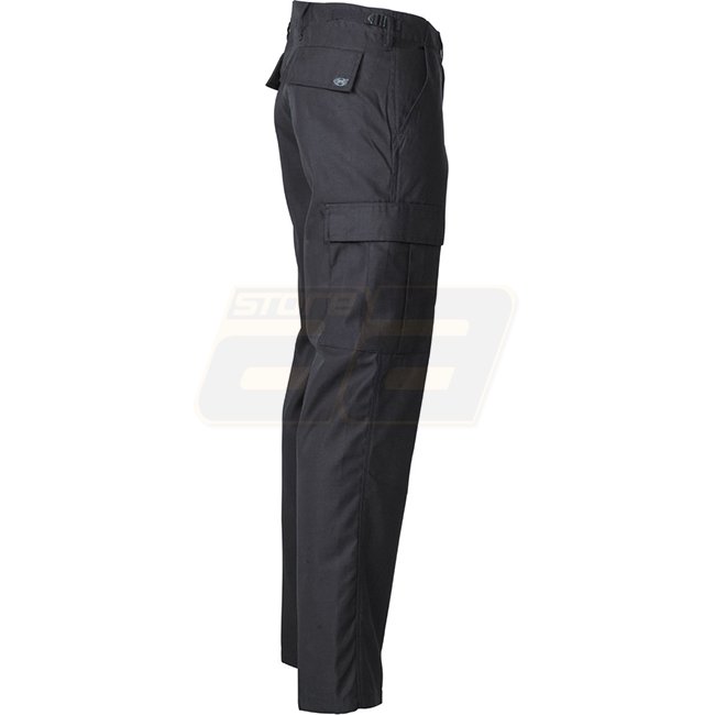 Mehrfach-Taschen MFH BDU Kampfanzughose in klassischem Schwarz. Eigenschaften: Frontreißverschluss, verstellbarer Bund und strapazierfähiger Polyester-Baumwoll-Mix.