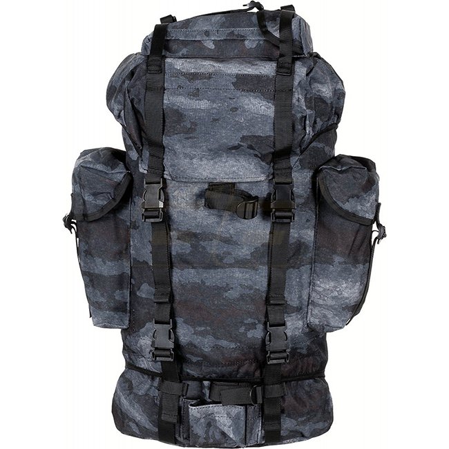 MFH Kampfrucksack 65 l - HDT Camo LE: Verstellbare gepolsterte Schultergurte, Hüftgurt mit Klickverschluss, mehrere Taschen, Hauptfach mit Bodenfach, Aluminium-Stabilitätsstab, verschiedene Befestigungsgurte, 65 l Fassungsvermögen. Abmessungen: ca. 43
