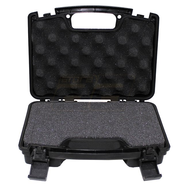 Schützen Sie Ihre Pistole in diesem stoßfesten, abschließbaren Kunststoffkoffer. Mit 2 Schnappverschlüssen, Griff, 2 Sicherheitsösen, Schaumstoffpolsterung und Gummiversiegelung am Deckel. Spritzwassergeschützt mit einem mehrschichtigen Schaumeinlage. Auß