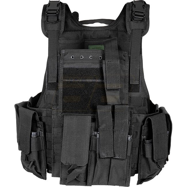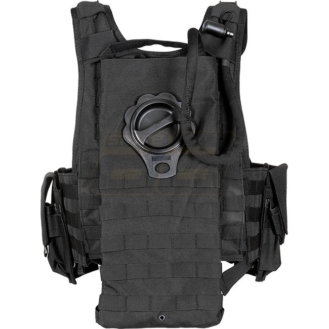 MFH Ranger Weste - Schwarz: Taktische Weste mit integriertem Hydratationssystem, mehreren Taschen und Molle-Schlaufen-System. Verstellbare Passform, abnehmbaren Teilen und aus 100% Polyesterstoff gefertigt.