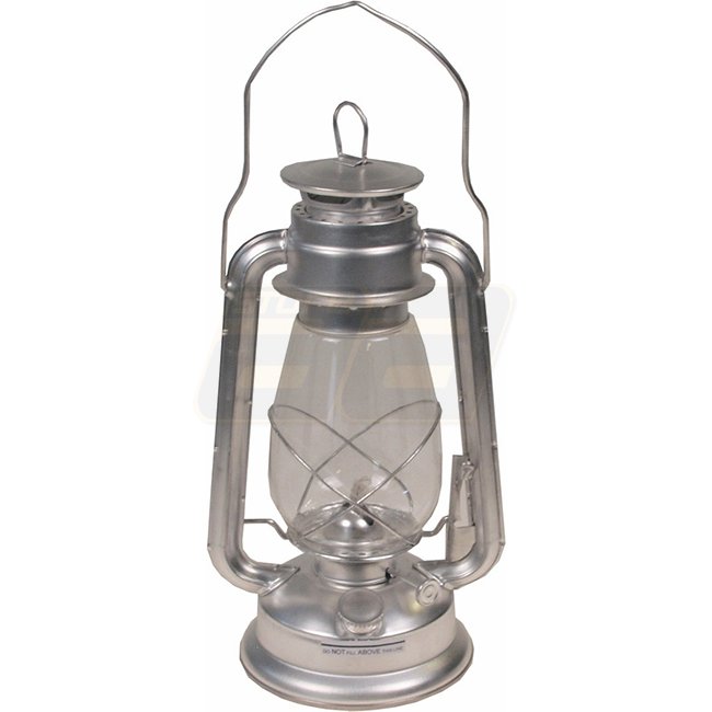 Die MFH Storm Petroleumlampe in Silber ist eine klassische, zuverlässige Laterne mit einem stabilen Tragegriff und einem Glaszylinder. Ihr Sockel hat einen Durchmesser von ca. 14 cm und ist ca. 28 cm hoch.