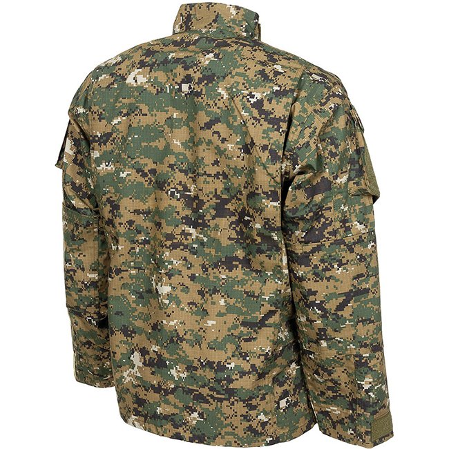 MFH US ACU Feldjacke Ripstop - Digital Woodland - XL: US Army Combat Uniformjacke mit verdecktem Reißverschluss, mehreren Taschen mit Klettverschluss, verstellbarem Kragen, Rückenfalten für Bewegungsfreiheit und Klettverschlüssen für Anpassungen. Material