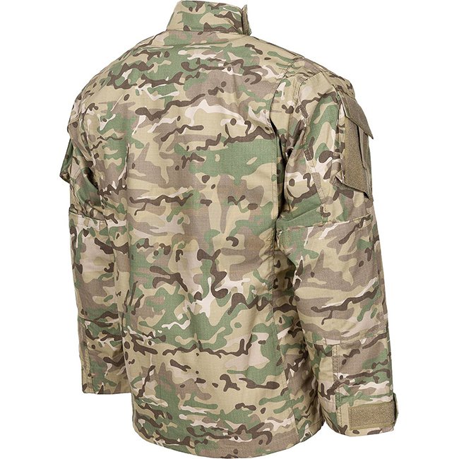 Hochwertige MFH US ACU Feldjacke Ripstop in Operation Camo, Größe XL. Standard US-Armee-Modell mit verdezendem 2-Wege-Reißverschluss, mehreren Taschen mit Klettverschluss, Taschen für Ellenbogenschützer, verstellbarem Kragen und Ärmelenden. Material: 100%