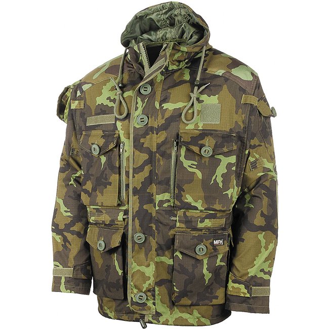 MFHHighDefence SMOCK Commando Jacke Ripstop - M95 CZ Tarnung - XL: Versteckter 2-Wege-Frontreißverschluss, mehrere Taschen mit Klappen und Knöpfen, verstellbare Taille, verstärkte Kapuze und Ellbogen, Klettverschlussflächen, Unterarmreißverschlüsse, Mater