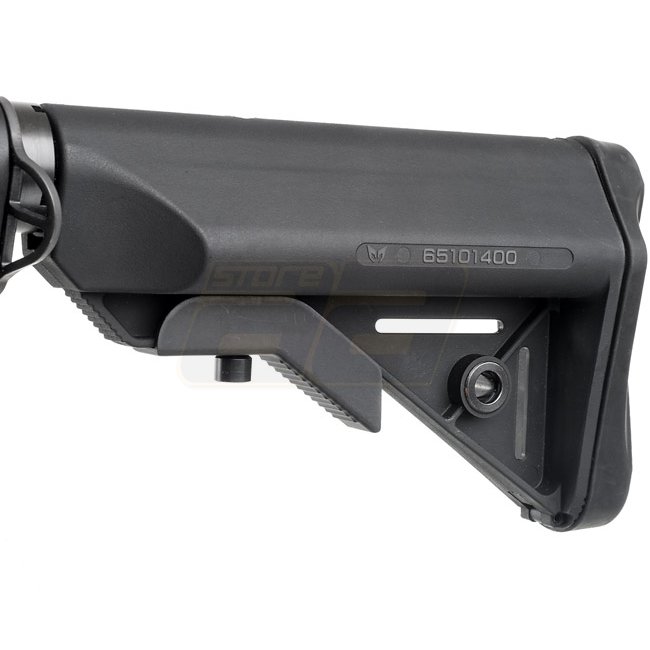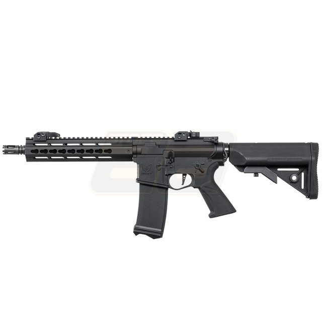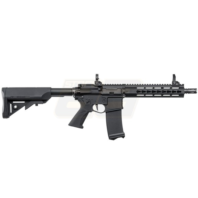 Hochleistungs-Modell Modify XTC-CQB AEG in schlankem Schwarz. Verfügt über ein Version 2 Gearbox, einen Langmotor und eine Metallkonstruktion mit Polymer-Schaft und Pistolengriff. Magazin Kapazität von 190 (6mm) Kugeln, einstellbare Hop-Up und Schussmodi