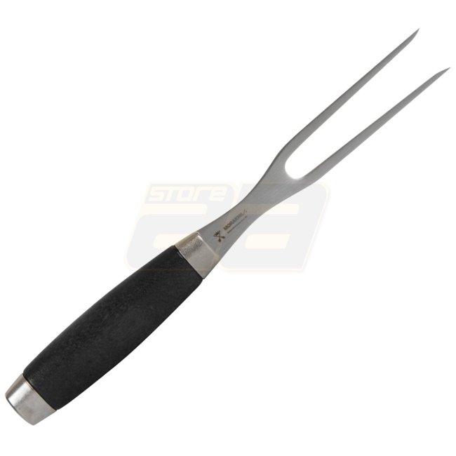 Morakniv Classic 1891 Schnitzgabel - Schwarz ist eine hochwertige Schnitzgabel mit Klinge aus rostfreiem Stahl, die 222g wiegt. Sie hat eine Klingenlänge von 150mm, eine Gesamtlänge von 270mm und eine Klingendicke von 2,5mm. Diese Gabel ist perfekt für pr