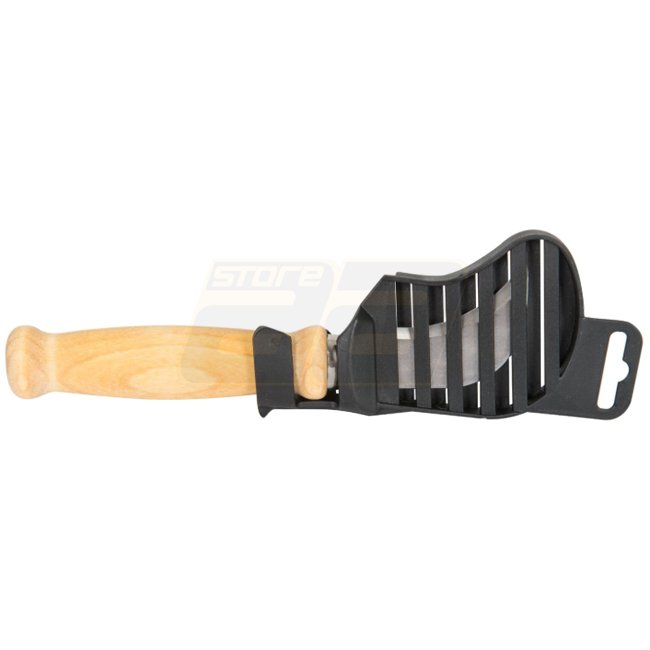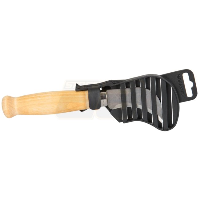 Morakniv Dachpappe-Messer mit Holz/Schwarzem Griff, ausgestattet mit einer 63 mm langen Klinge aus Kohlenstoffstahl. Wiegt 108 g und ist 180 mm lang.
