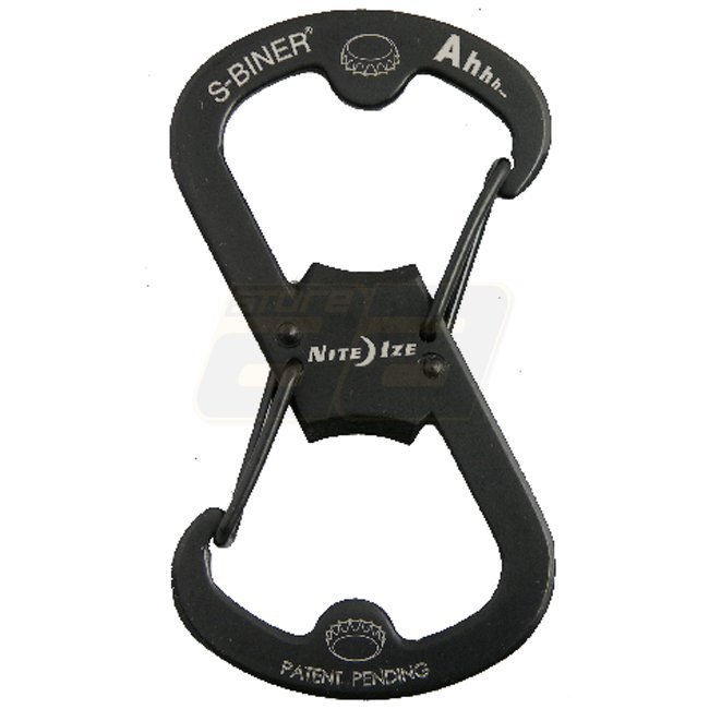 Ein multifunktionaler S-Biner mit integrierten Flaschenöffnern an beiden Enden - Nite Ize Ahhh... Edelstahl-Flaschenöffner in Schwarz.