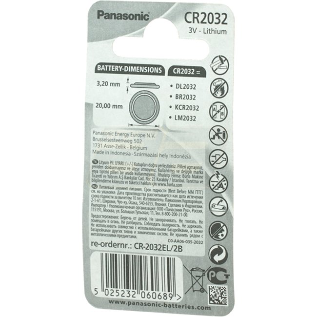 Erhalten Sie zuverlässige Leistung mit dem Panasonic CR2032 2er-Batteriepack. Kompakt und langlebig, sind diese Batterien perfekt für kleine elektronische Geräte wie Uhren, Taschenrechner und Schlüsselanhänger.