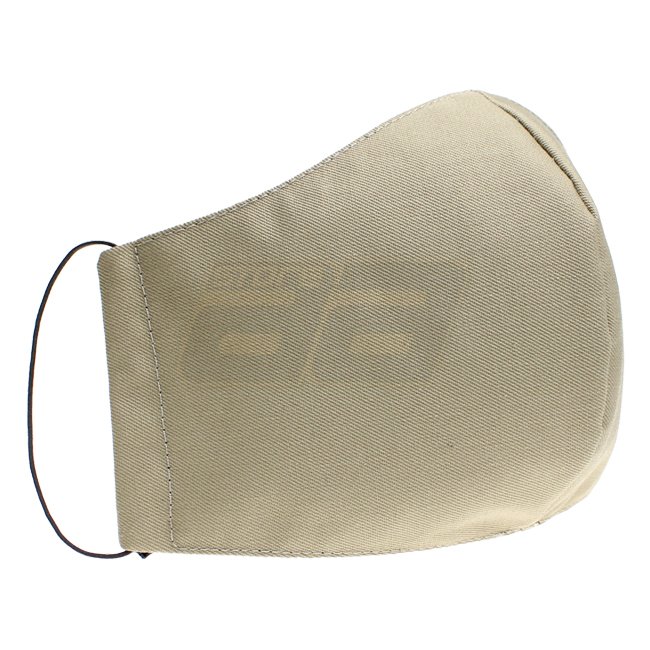Schutzmasken in Khaki / Schwarz aus einem 2-lagigen PolyCotton-Mischgewebe. Waschbar und handgefertigt in Europa.