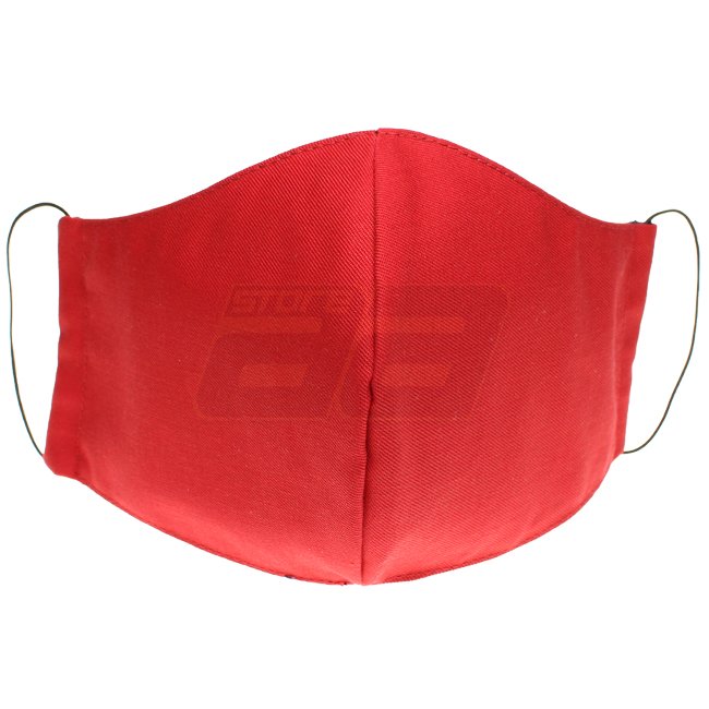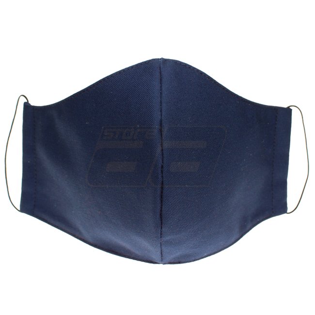 Schutzmaske in marineblauer/roter Farbe, gefertigt aus 2 Schichten PolyCotton. Waschbar und handgemacht in Europa.