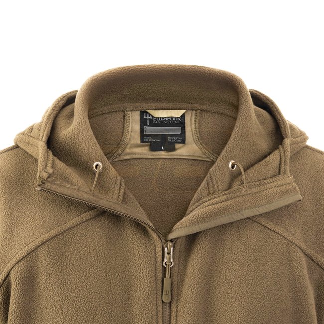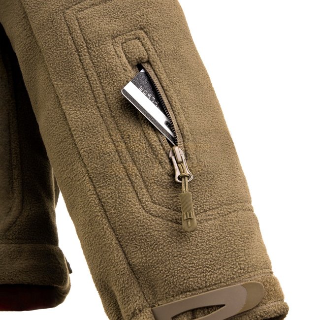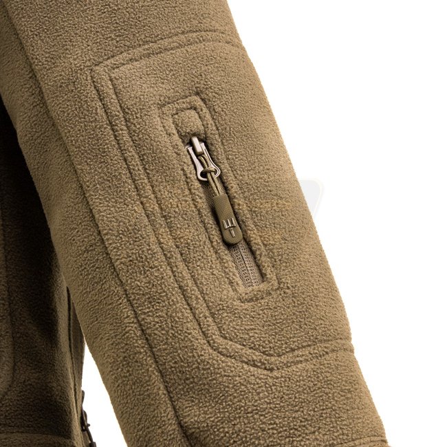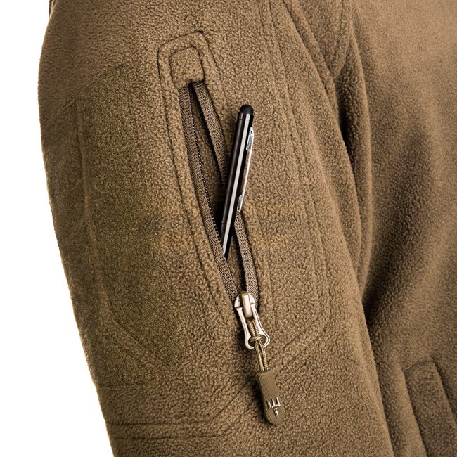 Die Jacke kann eigenständig oder auch als Isolationsschicht unter einer wasser- / winddichten Aussenhülle getragen werden. Dank dem schweren doppelten Fleece-Material und dem geräumigen Schnitt hält sie den Träger jederzeit angenehm warm. Die beiden Klettflächen auf den Oberarmen weisen eine vertikale Trennung auf, die dabei hilft, dass der Klett sich ergonomisch um den Oberarm legen kann.
