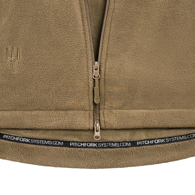 Alle Komponenten wurden speziell für die FAHRIUS Heavy Fleece Jacke entwickelt und farblich an andere PITCHFORK Systems Produkte im gleichen Farbton angeglichen. So passen Details wie etwa die Klettflächen, Reissverschlüsse oder die aufwändig gestickten Trident-Logos perfekt zum Hauptmaterial. Das Resultat ist ein optisch einheitliches und dezentes Erscheinungsbild, damit sich die Jacke für eine Vielzahl von Aktivitäten eignet.
