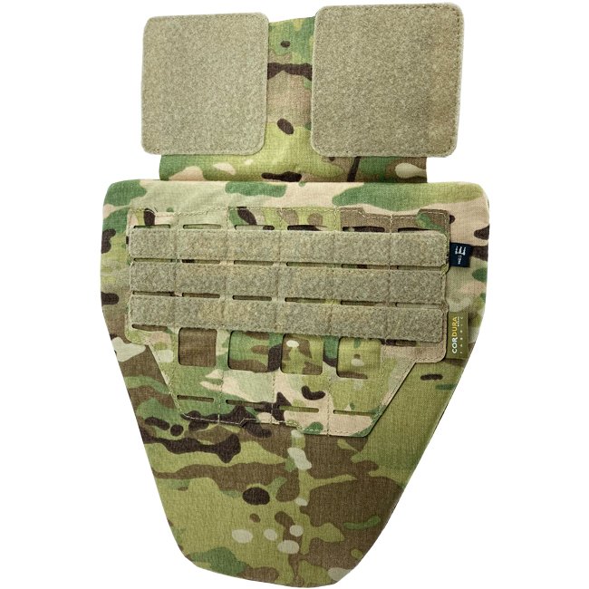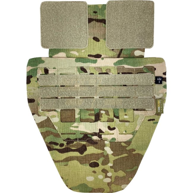 Der Pitchfork Groß-Schrittschutz erweitert den Schutz der Kampfweste durch zusätzliche weiche ballistische Einlagen gegen gängige Handfeuerwaffenkaliber. Ausgestattet mit einem vorderen MOLLE-System zur Anbringung von Zubehör und ergonomischer Form für ei