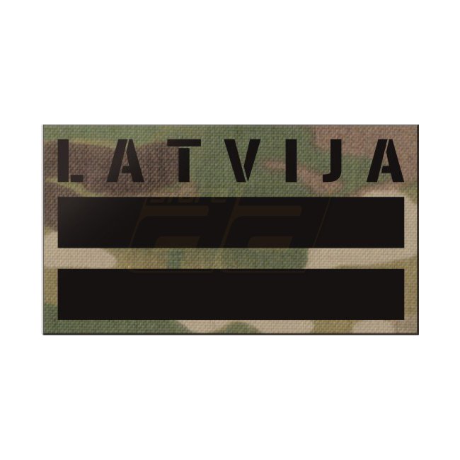Pitchfork Lettland IR Druckaufnäher - Multicam, Maße 90 x 50 mm. Mit einer Vorderseite aus IR-Folie mit lebhaftem Druck und einer Rückseite mit Klettfläche.