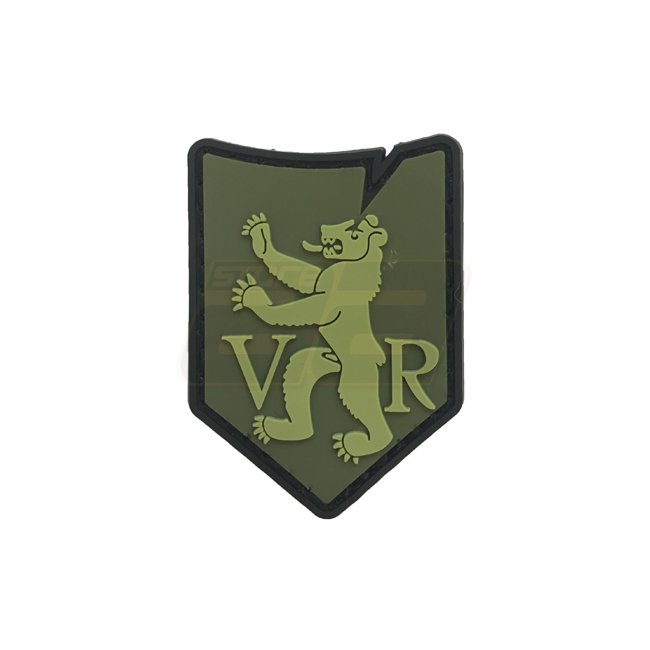 Pitchfork Taktischer Patch AR - Olive mit Abmessungen 37 x 45 mm und Klettverschlussrücken.