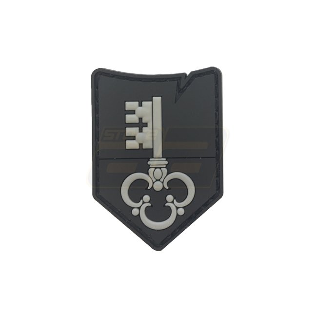 Dieser schwarze Pitchfork Tactical Patch OW hat die Abmessungen von 37 x 45 mm mit einer Klettverschlussrückseite.