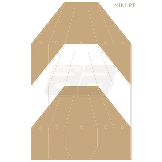 Die Abmessungen der IPSC PT MINI Schießziele entsprechen den IPSC Vorschriften und den Hard Cover Konstruktionen. Die Scheiben werden auf 80 g Offsetpapier gedruckt, was sie billiger macht, weniger Platz beanspruchen lässt und einfacher zu transportieren macht als Kartonziele. Die Linien, die die Zonen A, C und D trennen, sind dünn genug, um aus einer Entfernung von 10 m unsichtbar zu sein, wie bei einem Pappziel. Nachdem man sich Schild genähert hat, kann leicht zwischen Treffern unterscheiden werden.