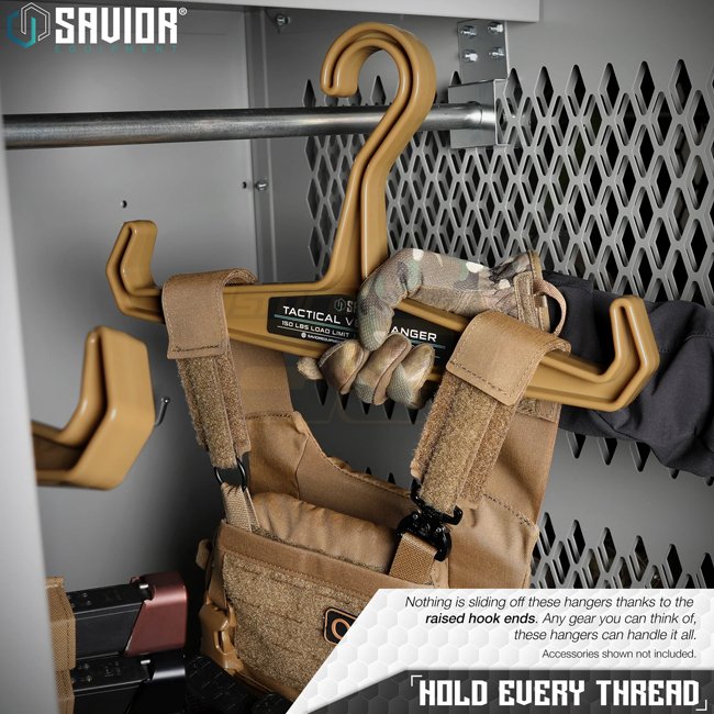 Organisieren Sie Ihre taktischen Westen und Plattenträger mit Leichtigkeit mit dem Savior Equipment Tactical Vest Hanger. Langlebige und platzsparende Lösung für die Aufbewahrung zu Hause oder im Spind. 2er-Set inbegriffen.