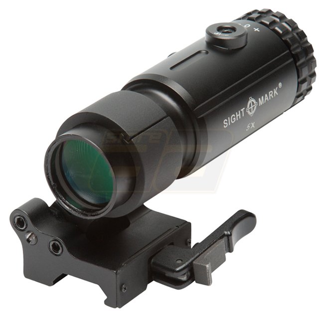Der Sightmark T-5 ist ein Vergrösserungsaufsatz, der hinter einem Reflexvisier oder einer Rot-Punkt Zielhilfe montiert wird und bei einem AR15 auf gleicher Höhe mit dem Korn liegt (sog. Absolute Co-Witness). Ändern Sie die Vergrößerung Ihrer Nahbereichsoptik im Handumdrehen von 1x auf 5x, indem Sie die seitliche Halterung des T-5 verwenden. Das schlanke Design des Magnifiers verhindert, dass sich Kleidung und Ausrüstung verfängt. Die mitgelieferte LQD-Halterung ist ideal um das Einsatzspektrum auf 200 Meter aus zu dehnen. Die Aluminiumkonstruktion des T-5 ist stoßfest bis zum Kaliber .308 und bietet einen wasserfesten Schutz nach IP55. Helligkeit und Auflösung werden durch vollständig mehrfachvergütete Optiken verbessert. Die Seiten- und Höhenverstellung hilft Schützen, das Absehen ihres Rotpunkt- / Reflexvisiers mittig auszurichten. Der Sightmark T-5 wird mit der LQD-Halterung, Einstellwerkzeuge sowie der Bedienungsanleitung geliefert.