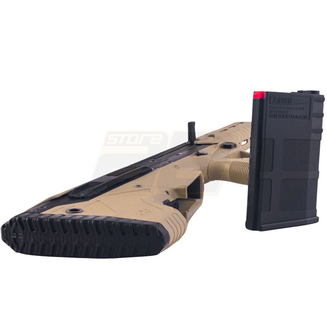 Das Silverback MDR-X AEG V3, lizenziert von Desert Tech, ist ein fortschrittliches Bullpup-Gewehr, inspiriert von dem realen Micro Dynamic Rifle Extreme (MDR-X). Dieses vollständig beidhändig bedienbare Gewehr bietet Vielseitigkeit und Authentizität, ideal für verschiedene Airsoft-Szenarien.
