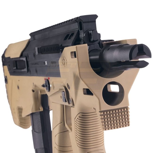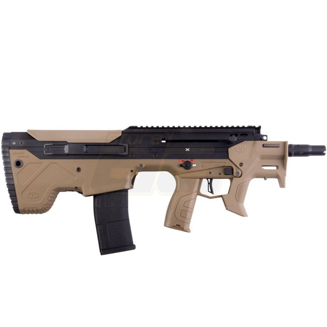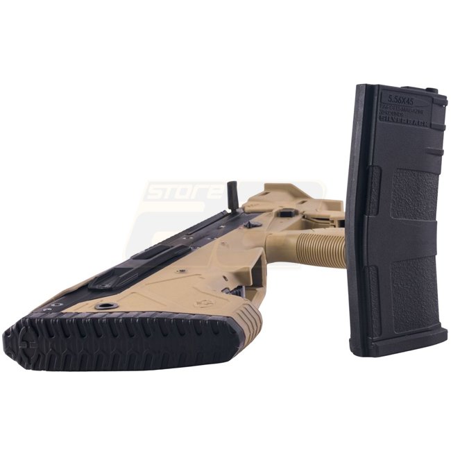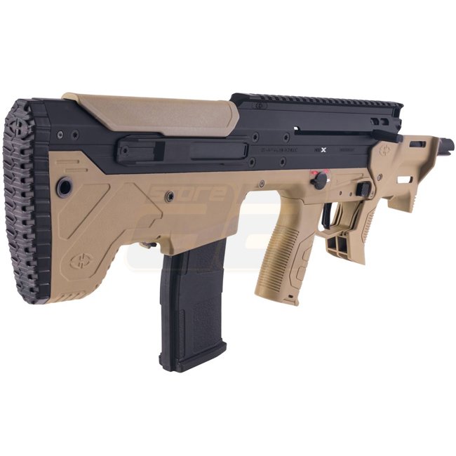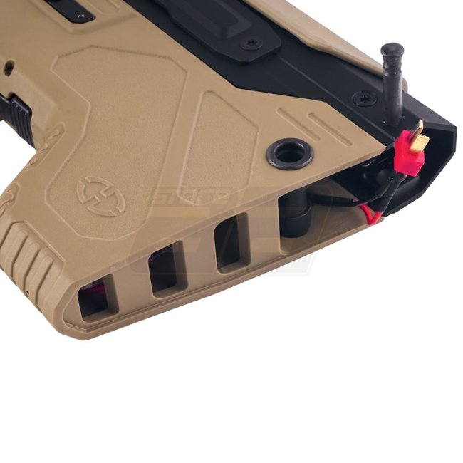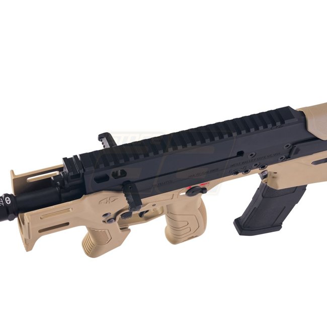 Silverback MDR-X Micron AEG V3 - Dual Tone ist ein modernes Bullpup-Gewehr, das für Vielseitigkeit ausgelegt ist, mit beidhändigen Bedienelementen, Mehrkaliberfähigkeit und unvergleichlicher Authentizität mit gravierten Markierungen. Hergestellt aus strap