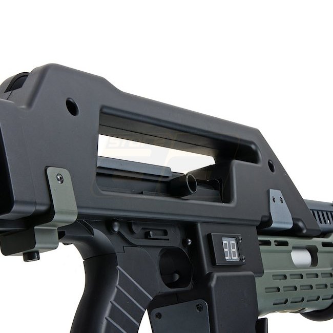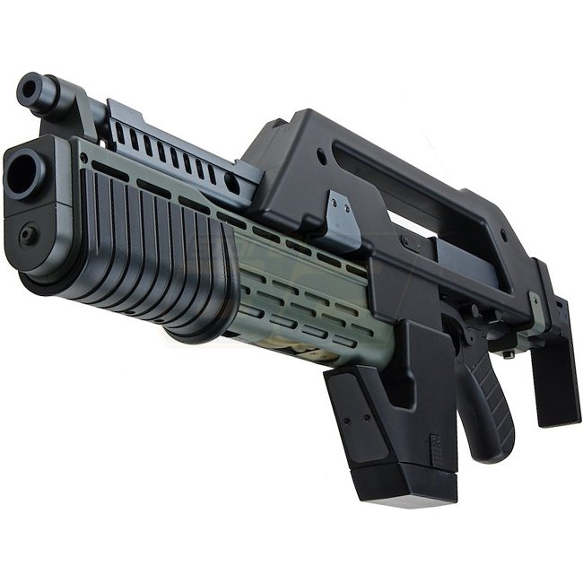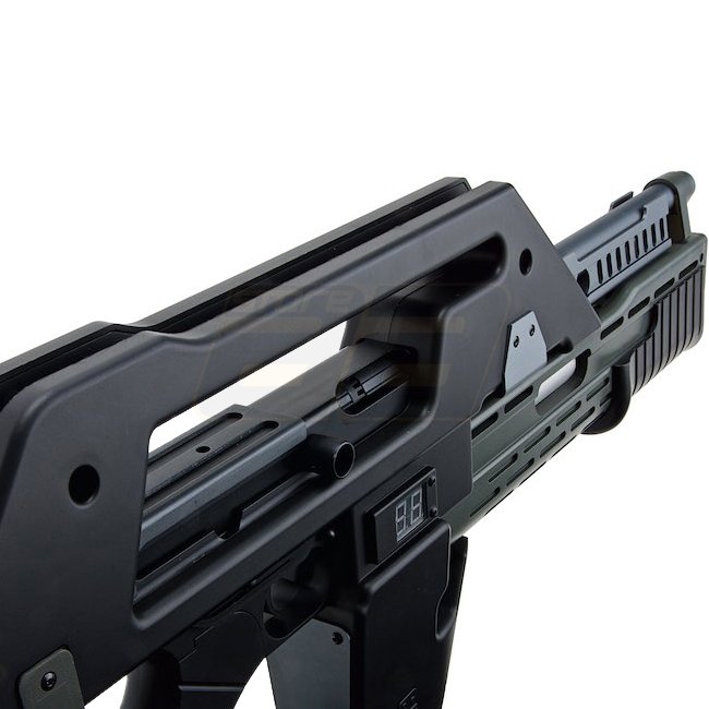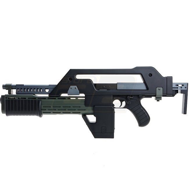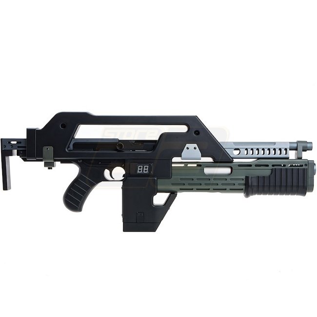Aufgebaut auf einem Snow Wolf M1A1 AEG Gewehr beinhaltet dieses Pulse Rifle einen digitalen Patronenzähler welcher von 95 mit jedem Schuss runter zählt. Im Granatwerfer befindet sich zudem einen Dummy Granate (Atrappe).