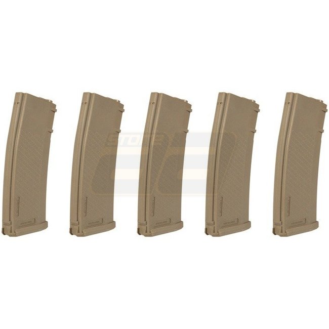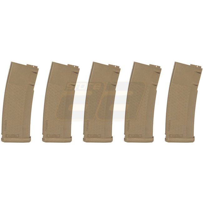 Erhalten Sie das Specna Arms 125rds S-Mag Magazine Set in Tan, bestehend aus 5 Polymermagazinen, die für M4/M16 AEGs geeignet sind. Jedes Magazin hat eine Kapazität von 100 Schuss und wiegt 155 g.