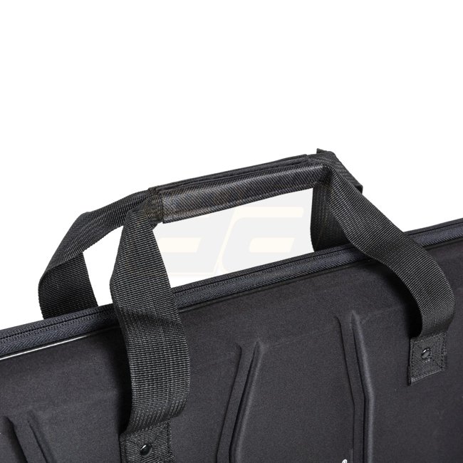 Die Tasche verfügt über eine umlaufende Schaumstoffpolsterung, die leichten Stössen entgegenwirkt und für strukturelle Stabilität sorgt. Die Replik wird innen durch seitlich eingearbeitete, konturierte Schaumelemente gesichert. Die Tasche ist für Waffen bis ca. 83 cm Länge geeignet.