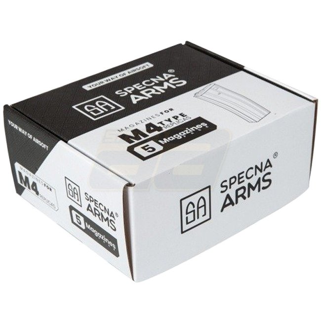 Hochwertiges Specna Arms M4 300rds Metallmagazin-Set mit elegantem Dual-Tone-Design. Ideal für M4/M16 AEG-Gewehre, enthält dieses Set 5 Magazine, jedes mit einer Kapazität von 300rds. Hergestellt aus langlebigem Metall wiegen diese Magazine nur 220g und s