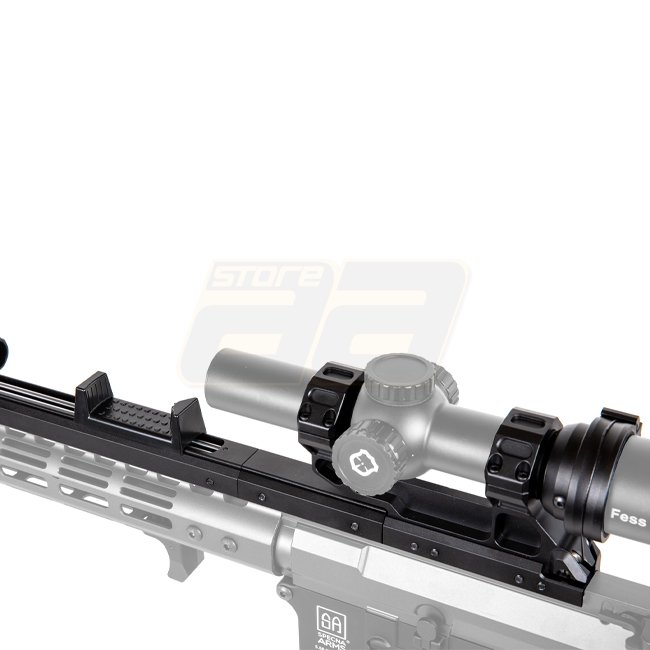 Für die korrekte Montage wird ein 37 cm langes Stück Picatinnyschiene gleicher Höhe benötigt.