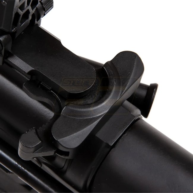 Kurze AR-15 mit M-Lok-Handschutz und PDW-Schaft. Das Gehäuse verfügt über lizensierte Rock River Arms Markierungen. Mit fortschrittlichen Technologien wie dem ESA™-Schnellfederwechselsystem und dem Gate X-ASR bieten diese Airsoft-Repliken hohe Flexibilität und Anpassungsfähigkeit – ideal für verschiedene Einsatzbedingungen direkt auf dem Spielfeld.