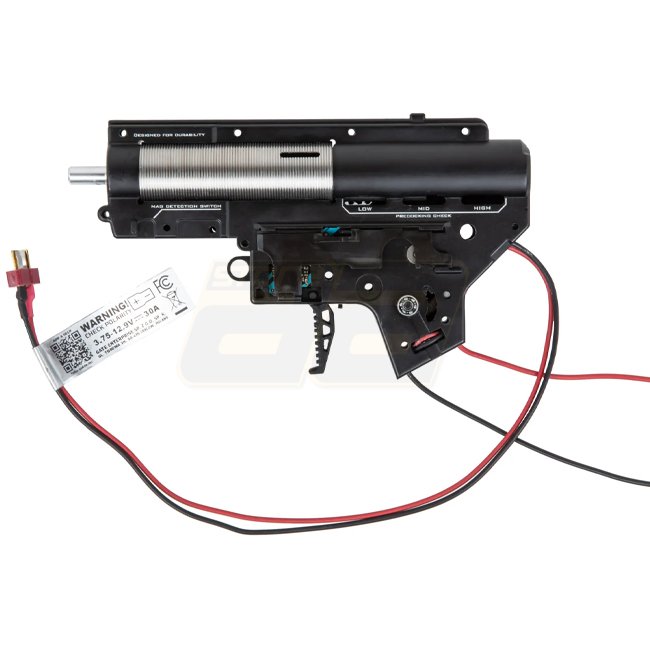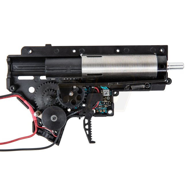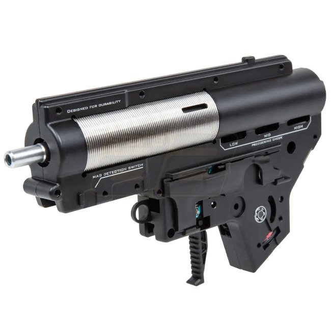 Dank des Schnellfederwechselsystem kann die Feder mit wenigen Handgriffen ausgetauscht werden. Dieses starke Paket wird abgerundet durch ein leistungsstarkes Hop-Up mit rotierendem Einstellrad und einer hochwertigen Gearbox mit ihren hochwertigen Einzelteilen. Diese Elemente gewährleisten eine hohe Stabilität und Präzision, auch bei intensiver Nutzung und maximaler Anpassungsfähigkeit.
