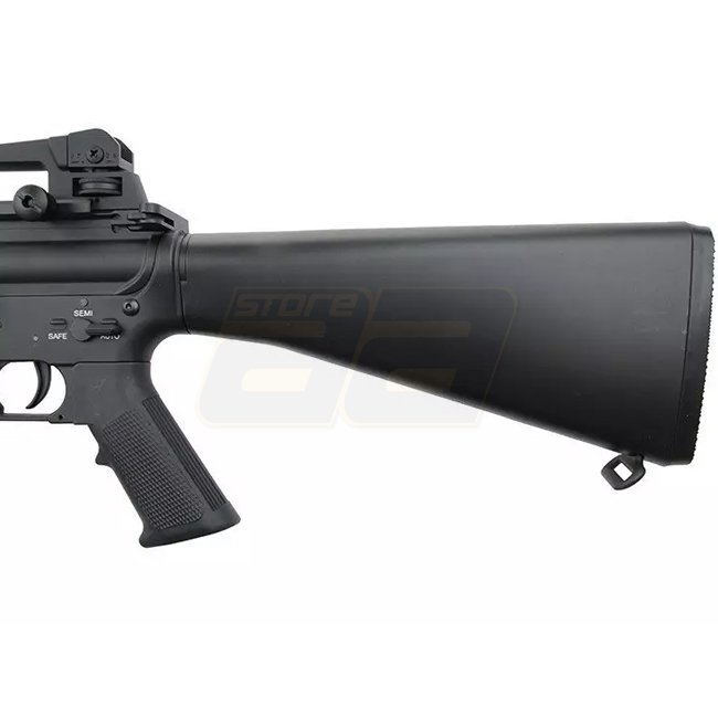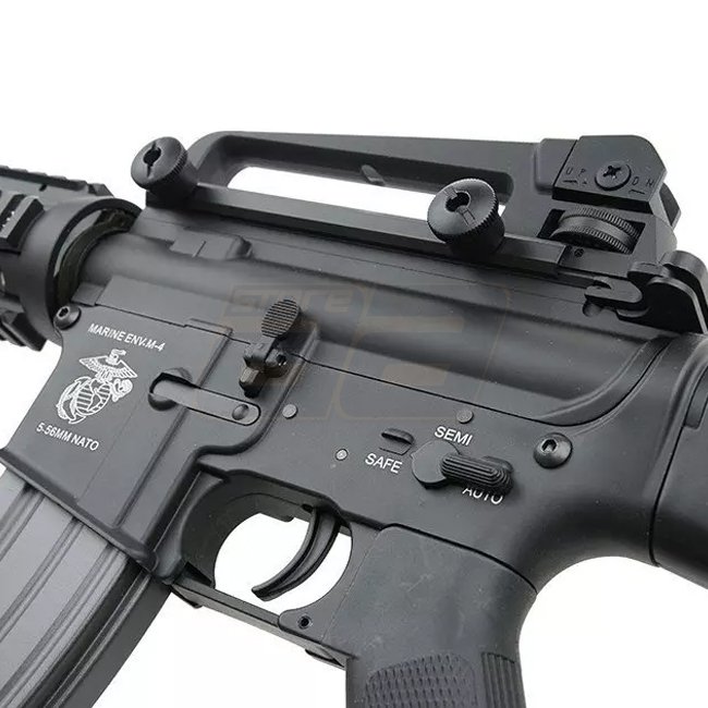 Schaft und Pistolengriff bestehen aus Polymerkunststoff. Die AEG verwendet das Schnellfederwechselsystem Enter & Convert™. Dies ermöglicht eine schnelle und effiziente Anpassung der Leistung der Replik an die erwarteten Bedingungen auf dem Spielfeld, ohne dass der Zugang zu einer Werkstatt oder einer Reihe von Spezialwerkzeugen erforderlich ist - nach dem Entfernen der Gearbox dauert der Federwechsel selbst buchstäblich Sekunden.