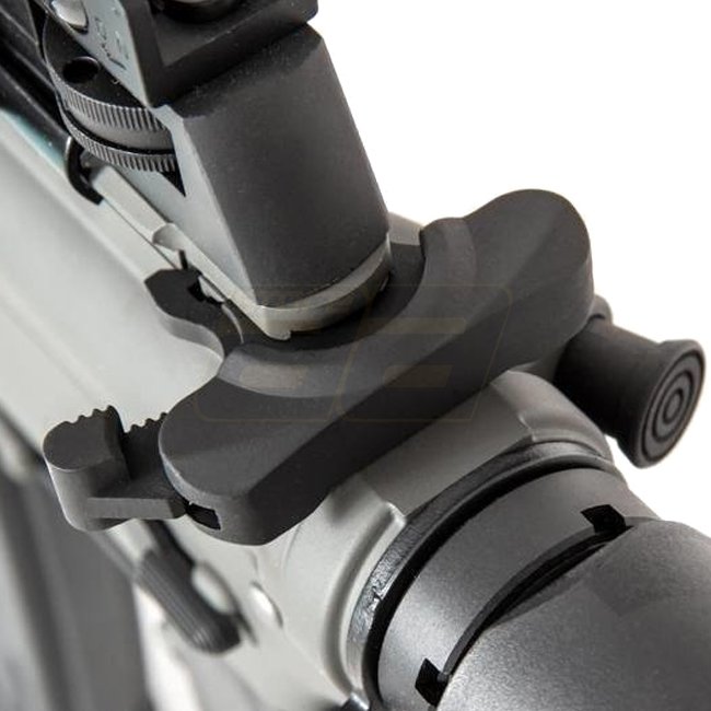 Die Modelle der Specna Arms EDGE E-Serie verfügen über ein nanobeschichtetes Metall Gehäuse. Im Innern sorgt eine robuste "ORION“ Gearbox für Zuverlässigkeit und Flexibilität, da diese mit dem "ESA“ Federschnellwechselsystem ausgestattet sind. Dadurch lässt sich die Leistung mit nur wenigen Handgriffen verändern. Des Weiteren ist die Gearbox bereits mit einem GATE X-ASR Mosfet ausgestattet. Die verbauten Teile erlauben die Verwendung unterschiedlich starker Federn (bis M140). Der 6.03mm Innenlauf kombiniert mit einer Präzisions-HopUp Unit mit umlaufendem Einstellrad sorgt für die nötige Präzision. Specna Arms liefert neben der ab Werk verbauten Feder eine zusätzliche M90 Feder mit, womit sich die Leistung der AEG auf ca. 310 FPS reduzieren lässt.