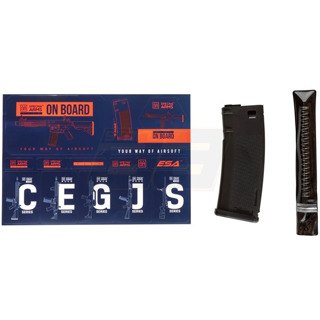 Das Gehäuse, das Schaftrohr mit dem vergrößerten SF-Schaft, in dem der Akku untergebracht ist, sowie die Front im M-LOK Standard und der Pistolengriff bestehen aus Nylonfaser-verstärktem Polymer Kunststoff. Andere Komponenten wie Lauf, Mündungsfeuerdämpfer und der vergrößerte Ladegriff sind aus Metall (alle Schrauben, Stifte, die Hülsenauswerferklappe und der Verschlussdeckel sind aus Stahl). Auf dem Gehäuse befinden sich Markierungen und eine Seriennummer. Specna Arms liefert neben der ab Werk verbauten Feder eine zusätzliche M90 Feder mit, womit sich die Leistung der AEG auf ca. 310 FPS reduzieren lässt.