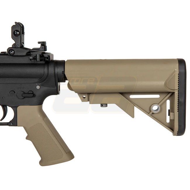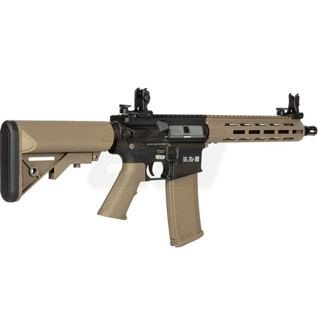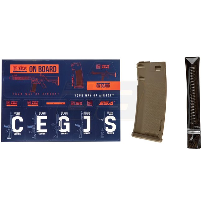 Das Gehäuse, das Schaftrohr mit dem vergrößerten SF-Schaft, in dem der Akku untergebracht ist, sowie die Front im M-LOK Standard und der Pistolengriff bestehen aus Nylonfaser-verstärktem Polymer Kunststoff. Andere Komponenten wie Lauf, Mündungsfeuerdämpfer und der vergrößerte Ladegriff sind aus Metall (alle Schrauben, Stifte, die Hülsenauswerferklappe und der Verschlussdeckel sind aus Stahl). Auf dem Gehäuse befinden sich Markierungen und eine Seriennummer. Specna Arms liefert neben der ab Werk verbauten Feder eine zusätzliche M90 Feder mit, womit sich die Leistung der AEG auf ca. 310 FPS reduzieren lässt.