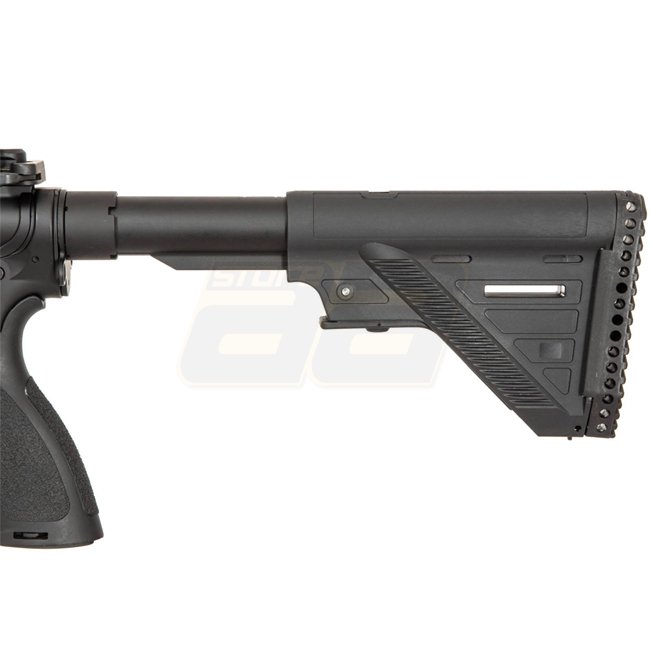 Schaft und Pistolengriff bestehen aus Polymerkunststoff. Die AEG verwendet das Schnellfederwechselsystem Enter & Convert™. Dies ermöglicht eine schnelle und effiziente Anpassung der Leistung der Replik an die erwarteten Bedingungen auf dem Spielfeld, ohne dass der Zugang zu einer Werkstatt oder einer Reihe von Spezialwerkzeugen erforderlich ist - nach dem Entfernen der Gearbox dauert der Federwechsel selbst buchstäblich Sekunden.